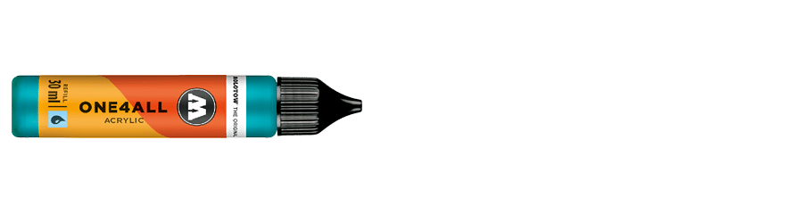 With 50 color shades the ONE4ALL has a broad range of acrylic colors when speaking of 180 ml refill bottles. The complex color spectrum also contains neon and metallic colors. Thanks to its good UV resistance of plain color shades and its high opacity, ONE4ALL acrylic paint is often used for diverse art projects. The acrylic pens / acrylic markers easily can be refilled thanks to the handy refill bottle. Moreover, the acrylic paint refill bottles are often used for art applications on bigger surfaces by using the refill and a brush.