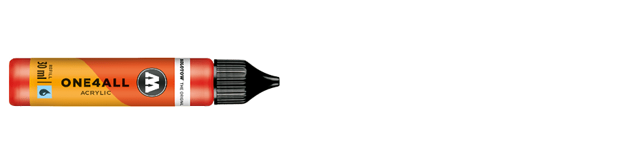 With 50 color shades the ONE4ALL has a broad range of acrylic colors when speaking of 180 ml refill bottles. The complex color spectrum also contains neon and metallic colors. Thanks to its good UV resistance of plain color shades and its high opacity, ONE4ALL acrylic paint is often used for diverse art projects. The acrylic pens / acrylic markers easily can be refilled thanks to the handy refill bottle. Moreover, the acrylic paint refill bottles are often used for art applications on bigger surfaces by using the refill and a brush.