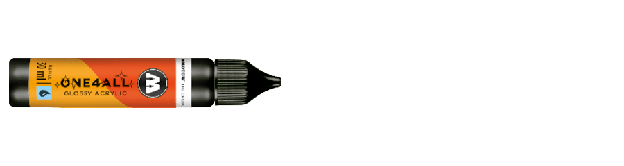 With 50 color shades the ONE4ALL has a broad range of acrylic colors when speaking of 180 ml refill bottles. The complex color spectrum also contains neon and metallic colors. Thanks to its good UV resistance of plain color shades and its high opacity, ONE4ALL acrylic paint is often used for diverse art projects. The acrylic pens / acrylic markers easily can be refilled thanks to the handy refill bottle. Moreover, the acrylic paint refill bottles are often used for art applications on bigger surfaces by using the refill and a brush.