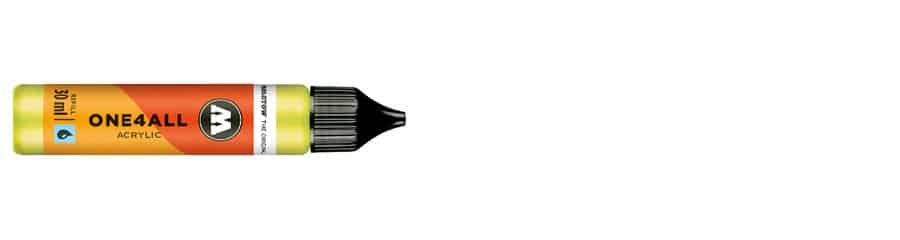 With 50 color shades the ONE4ALL has a broad range of acrylic colors when speaking of 180 ml refill bottles. The complex color spectrum also contains neon and metallic colors. Thanks to its good UV resistance of plain color shades and its high opacity, ONE4ALL acrylic paint is often used for diverse art projects. The acrylic pens / acrylic markers easily can be refilled thanks to the handy refill bottle. Moreover, the acrylic paint refill bottles are often used for art applications on bigger surfaces by using the refill and a brush.4250397601847