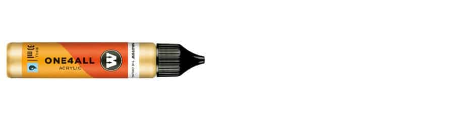 With 50 color shades the ONE4ALL has a broad range of acrylic colors when speaking of 180 ml refill bottles. The complex color spectrum also contains neon and metallic colors. Thanks to its good UV resistance of plain color shades and its high opacity, ONE4ALL acrylic paint is often used for diverse art projects. The acrylic pens / acrylic markers easily can be refilled thanks to the handy refill bottle. Moreover, the acrylic paint refill bottles are often used for art applications on bigger surfaces by using the refill and a brush.
