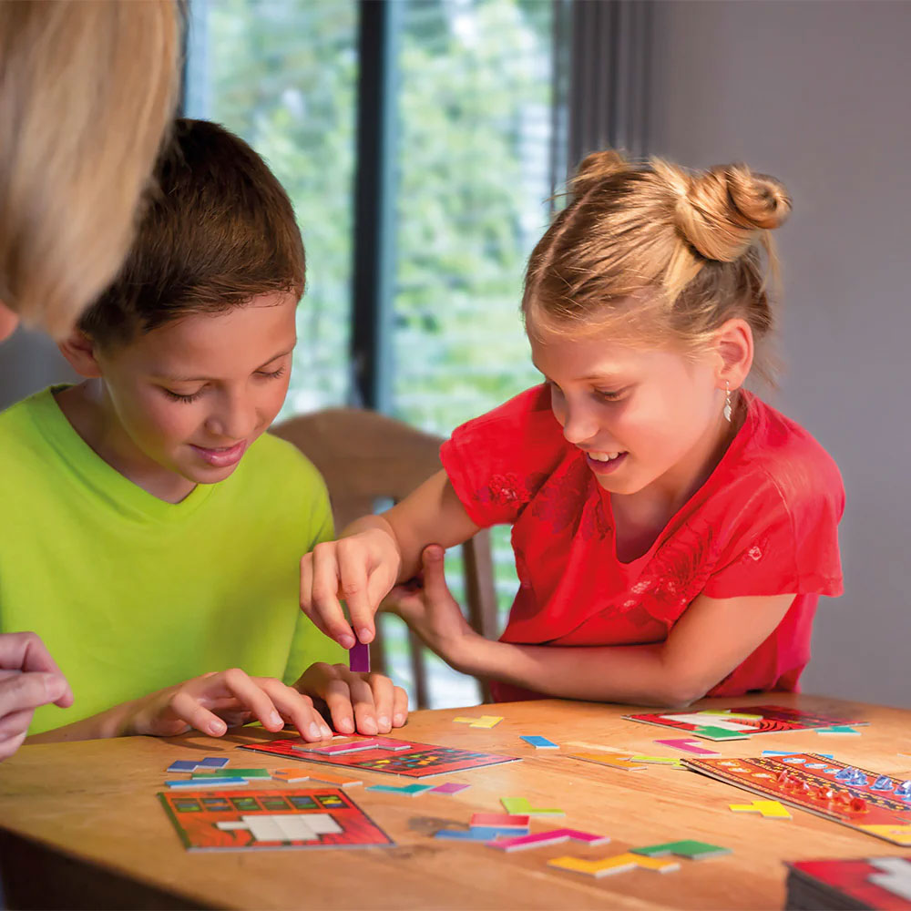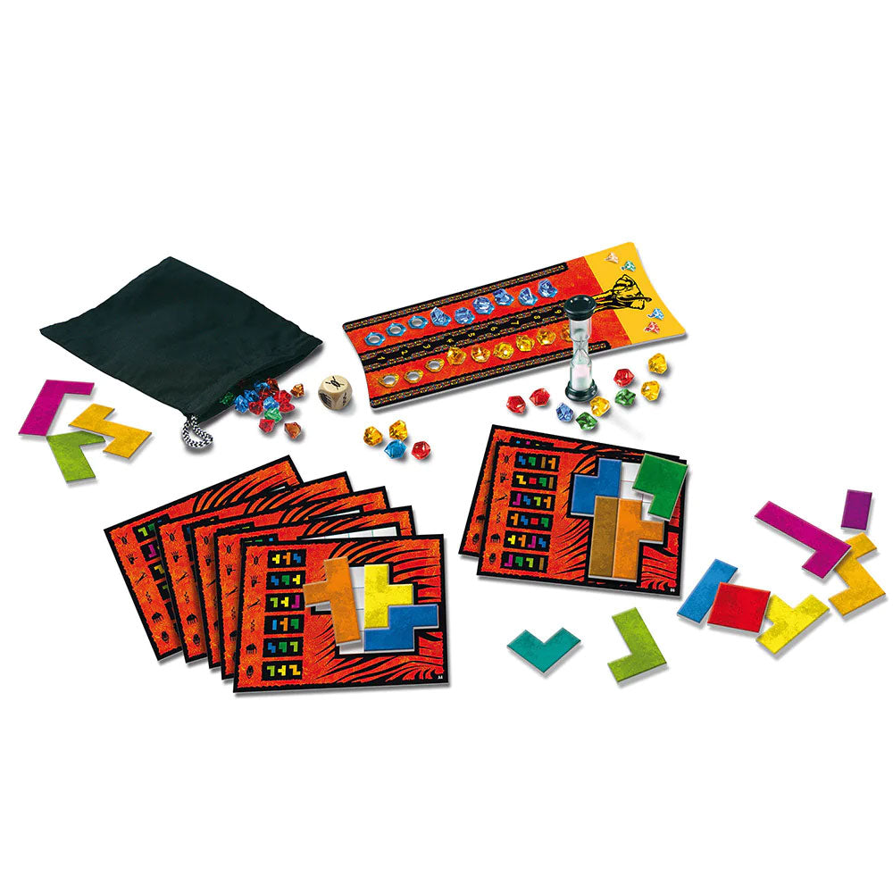 In Ubongo, players compete to solve individual puzzles as quickly as they can to get first crack at the gems on hand for the taking.
